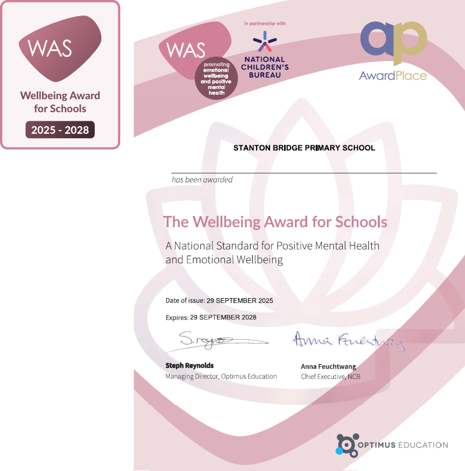 Stanton Bridge Primary School has been awarded the Wellbeing Award for Schools (WAS).