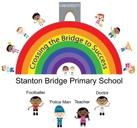Stanton Bridge’s logo was designed many years ago by a Year 6 pupil who having entered the competition was then voted as the most representative logo that fitted in well with the school’s vision statement – ‘Crossing the Bridge to Success. When the pupil was asked to explain the logo by the judging panel of a mixed group of ‘parent & student councillors’ he stated that the rainbow is there to show that if pupils decided to walk over the rainbow then they could go on to university, but others sitting below the rainbow would equally be successful and could do other things without going to university – they all just needed to cross or sit under the rainbow bridge of success.